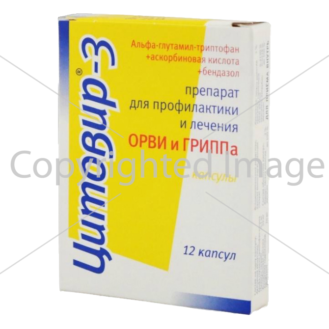 Цитовир-3 капсули 12 шт — це імуностимулюючий препарат, вироблений компанією Цитомед МБНПК АО (Росія). Препарат призначений для профілактики і комплексного лікування грипу та гострих респіраторних вірусних інфекцій у дорослих та дітей старше 6 років.