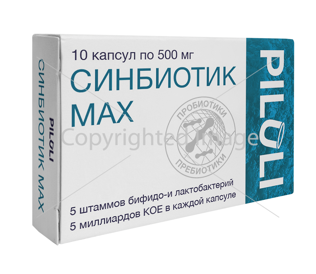 Содержание бифидобактерий 5,0×109 (1,0×109 ÷ 1,0×1010) КОЕ/капс., лактобактерий 5,0×108 (1,0×108 ÷ 1,0×109) КОЕ/капс